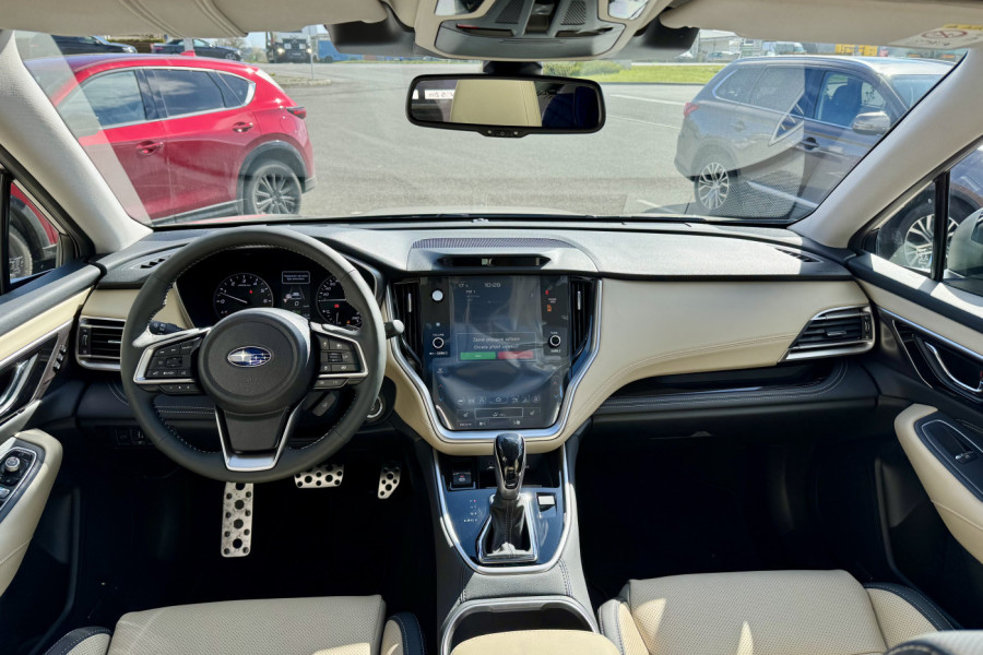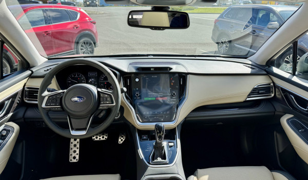 Palubní přístroje s barevným LCD displejem se zobrazením EyeSight systému. V obou osách nastavitelný volant. Řadící páky převodovky Lineartronic pod volantem. Tempomat. Hliníkové pedály.